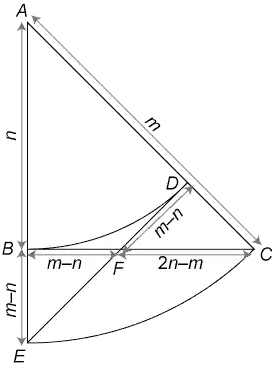 Como es un ángulo recto y es la mitad de un recto, BEF es también un triángulo rectángulo isósceles. Se cumple que . Razonando análogamente, es también un triángulo rectángulo isósceles, con catetos , y con hipotenusa , que son números también enteros y menores a y respectivamente.