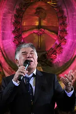 ![]() Raúl Lavié cantando en la Casa Rosada (2008) | ||