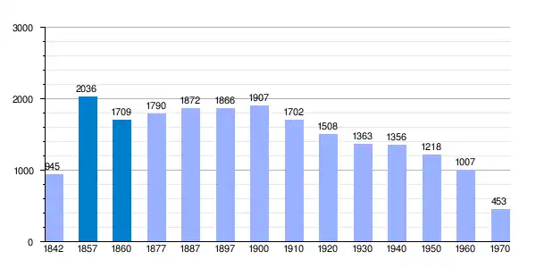 | Gráfica de evolución demográfica de Rabanal del Camino[5] entre 1842 y 1970 |
