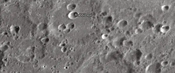 Por convención estos elementos son identificados en los mapas lunares poniendo la letra en el lado del punto medio del cráter que está más cercano al Rabbi Levi.