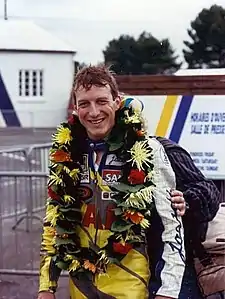 Rachel Nicotte en Le Mans en 1988 después de la victoria en el Campeonato de Francia