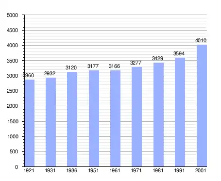 | Gráfica de evolución demográfica de Racines entre 1921 y 2001 |