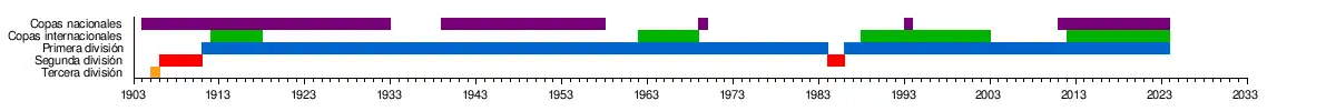 - Temporadas en 1.ª: 113 (20 en el amateurismo, 93 en el profesionalismo).