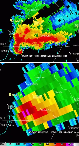 Los retornos fuertes (rojo o magenta) pueden indicar no solo lluvia pesada, sino también tormentas, granizo, vientos fuertes, o tornados, pero se requerirá una cuidadosa interpretación, por razones descritas más adelante en este artículo.