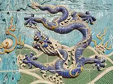 Detalle de un dragón en el "muro de los nueve dragones" en el Palacio Imperial. Ciudad Prohibida de Beijing..