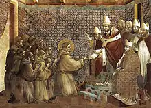 Por una bula de 1230, el Papa Gregorio IX declaró que el testamento de Francisco de Asís no obligaba a los integrantes de su orden; que el dinero, aunque les estuviera prohibido podía ser aceptado y administrado para sus necesidades, y que también podían hacer uso de otras cosas necesarias, como los conventos, libros, etc. Inocencio IV en 1245, con su bula añadió a los frailes el permiso de poder recurrir al nuncio apostólico para declarar otras cosas que les fueran necesarias, y dispuso que sus bienes fueran propiedad de la Santa Sede.
