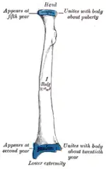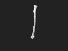 Presenta una curvatura externa generalmente poco pronunciada y otra interna de concavidad mirando al cúbito, mucho más acentuada. Tiene una forma prismática triangular, constando de tres caras y tres bordes:[3]