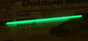 La radioluminiscencia de tritio es el uso de tritio gaseoso, un isótopo radiactivo de hidrógeno, para crear luz visible. El tritio emite electrones a través de la desintegración beta y, cuando interactúan con un material de fósforo, se emite luz a través del proceso de fosforescencia.[1] El proceso general de usar un material radiactivo para excitar un fósforo y finalmente generar luz se llama radioluminiscencia. Como la iluminación con tritio no requiere energía eléctrica, ha encontrado un amplio uso en aplicaciones tales como señales de salida de emergencia, iluminación de relojes de pulsera y fuentes portátiles pero muy fiables de luz de baja intensidad que no degradan la visión nocturna humana. Las miras de armas para uso nocturno y las luces pequeñas (que deben ser más confiables que las luces alimentadas por batería, pero que no interfieran con la visión nocturna o sean lo suficientemente brillantes como para revelar fácilmente la ubicación) utilizadas principalmente por personal militar se incluyen en la última aplicación.