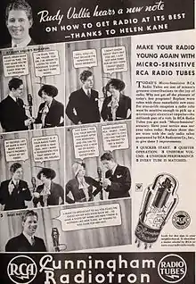 Sin embargo, el nombre también se utilizó comercialmente para un tipo de válvula de vacío diseñada para su uso en dispositivos domésticos, alrededor de la que se desarrolló una guerra de patentes entre distintos inventores que habían diseñado tubos de vacío similares con distintos detalles técnicos, como el británico John Ambrose Fleming (1848-1945) (inventor de la válvula termoiónica); el estadounidense Lee De Forest (1873-1961) (que ya había patentado el audión en 1906); o el también estadounidense Elmer T. Cunningham (1889-1965), quien inició la producción masiva de estos dispositivos sin someterse a derechos de patente previos.[2]