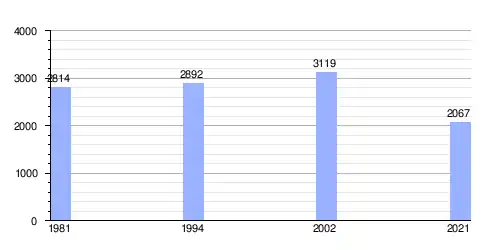 Hasta 2021 la población era de 2067 habitantes,[2] con una densidad de población de 143,8 habitantes por kilómetro cuadrado.[2]