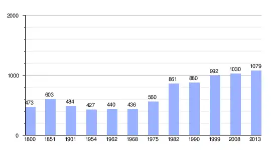 | Gráfica de evolución demográfica de Radon entre 1800 y 2013 |