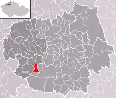 Se encuentra ubicada al este de la región, cerca de la orilla de los ríos Elba y Ohře, y de las regiones de Liberec y Bohemia Central.[1]