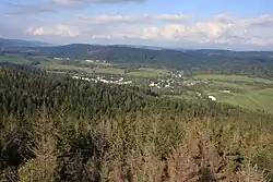 Se encuentra ubicada al noroeste de la región, cerca de la fuente del río Elba, en la zona de las montañas de los Gigantes (Sudetes occidentales) y de la frontera con Polonia y la región de Liberec.[1]