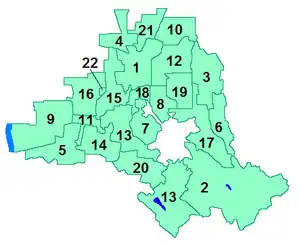 El distrito está compuesto por 3 municipios, 92 poblados y 12 pequeñas ciudades, unidos en 22 comunidades locales. La zona que comprende el distrito es de 1753km², lo que supone el 6,7% del porcentaje total del territorio de la República de Crimea.