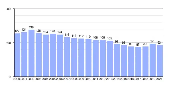 | Gráfica de evolución demográfica de Rairiz entre 2000 y 2021 |