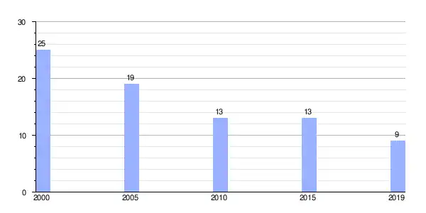 | Gráfica de evolución demográfica de Rairos entre 2000 y 2019 |