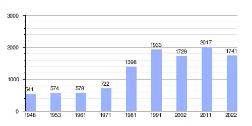 Hasta 2022 la población era de 1741 habitantes,[2] con una densidad de población de 451,5 habitantes por kilómetro cuadrado.[2]