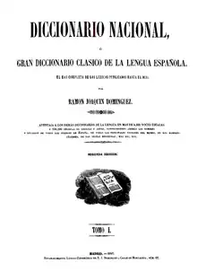 - Diccionario nacional o Gran diccionario clásico de la lengua española, Madrid, Estudio léxico-tipográfico de R. J. Domínguez, 1846-1847, 2 vols.[3]