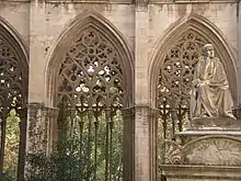 Claustro gótico, siglo XIV, de la catedral de Vic, con la tumba y monumento a Jaume Balmes.