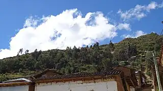 ![]() Vista de una de las ruinas de la parte superior del complejo Rapayán desde la misma ciudad de Rapayán. | ||
