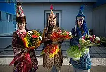 Mujeres kazajas en vestidos tradicionales.