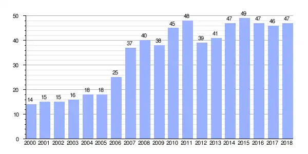 | Gráfica de evolución demográfica de Raso entre 2000 y 2018 |