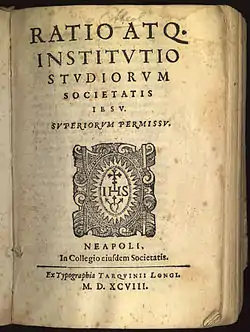 La Ratio Studiorum (traducido como «Plan de Estudios») es el documento que estableció formalmente el sistema global de educación de la Compañía de Jesús en 1599. Su título completo es Ratio atque Institutio Studiorum Societatis Iesu («Plan oficial de estudios de la Compañía de Jesús»). El trabajo es producto de muchos académicos internacionales, con amplia experiencia, que se encontraban en el colegio que los jesuitas tenían en Roma, el Colegio Romano.