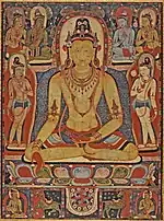 - Cinco Budas Dhyani Tabla 1, Fila 4, Columnas 1 a 5, Tabla 2, Fila 2, Columnas 1 a 12