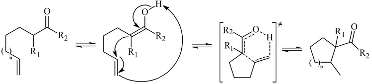 En la reacción de Conia, la enolización es seguida por un cambio concertado de 1,5-hidrógeno:[2]