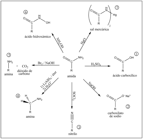 Las reacciones de amidas son las reacciones químicas en las que participan las amidas y que permiten su transformación en otras clases de compuestos orgánicos.