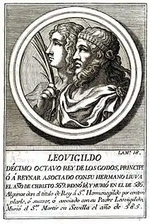 La rebelión de Hermenegildo contra el rey visigodo Leovigildo tuvo lugar entre el 580 y el 584 en el Reino visigodo de Toledo. La encabezó el hijo mayor del rey, Hermenegildo, y tuvo su epicentro en Sevilla. El trasfondo de la misma —y su posterior justificación—, fue la conversión de Hermenegildo al catolicismo por influencia de su esposa, la princesa franca Ingundis, y de Leandro, obispo de Sevilla, abandonando así su fe cristiana arriana que era la que profesaban los visigodos. Esta guerra civil entre godos acabó con la victoria del rey Leovigildo y el apresamiento y posterior asesinato del rebelde Hermenegildo.