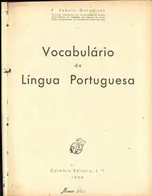 ![]() Primera página del libro Vocabulario da Língua Portuguesa. Coímbra, 1966. | ||