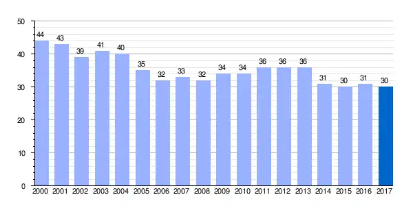 | Gráfica de evolución demográfica de Rebollosa[2] entre 2000 y 2017 |