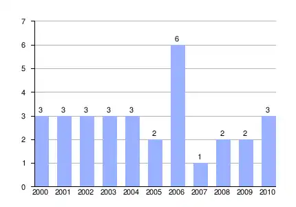 | Gráfica de evolución demográfica de Rebollosa de Pedro entre 2000 y 2010 |