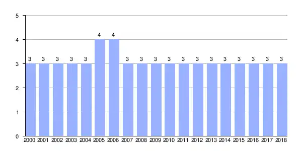 | Gráfica de evolución demográfica de Reboredo entre 2000 y 2018 |