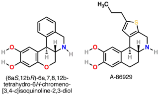 - A-86929 - agonista completo con selectividad 14 veces mayor para receptores similares a D 1 sobre D 2 [10][14][18]