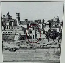 Esquema de la Torre Vieja oculta por el baluarte con troneras superiores.