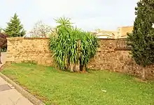 Lienzo del baluarte, murallas viejas y, en el medio, el foso.