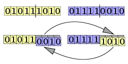 Se selecciona un punto en el vector del primer parental. Todos los datos más allá de este punto en el vector del organismo se intercambiarán entre los dos organismos parentales. Los organismos resultantes son los hijos: