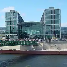 Se han remodelado las estaciones de tren y de metro, y en mayo de 2006 fue inaugurada la Estación Central de Berlín que será el motor de desarrollo de esta zona, con un plan de urbanización que mantiene un equilibrio entre oficinas, hoteles, comercios, viviendas y zonas verdes. Junto con esta estación se inauguraron otras cuatro en el eje norte-sur y este-oeste de Berlín, para completar el nódulo de transporte más grande de Europa.[44] El edificio no corresponde con los principios de reconstrucción crítica por lo que el arquitecto Daniel Libeskind afirmó en una entrevista que Stimmann le había dicho: “Si hubiera estado en el poder solo un mes antes, el edificio nunca habría recibido el permiso de construcción”.[11]