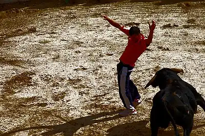 - Quiebro: Llamar al toro de frente, aguantar su llegada y engañarle con un movimiento de cintura.
