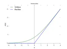 conocida como función softplus.[6] La derivada de dicha función es , p.e. la función logística.