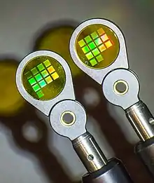 Hoy en día, la tecnología de semiconductores también se utiliza para grabar rejillas con patrones holográficos en materiales robustos como la sílice fundida. De esta manera, la holografía de baja luz parásita se combina con la alta eficiencia de las rejillas de transmisión grabadas profundas y se puede incorporar a la tecnología de fabricación de semiconductores de alto volumen y bajo costo.