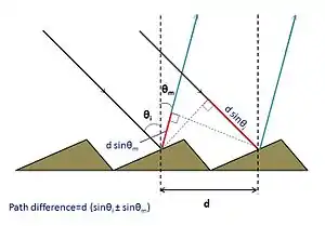 Se puede demostrar que si una onda plana incide en cualquier ángulo arbitrario θi, la ecuación de la rejilla se convierte en: