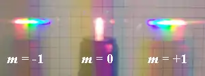 La dependencia de la longitud de onda en la ecuación de la rejilla muestra que la rejilla separa un haz incidente polícromo en sus componentes de longitud de onda constituyentes, es decir, es dispersiva. Cada longitud de onda del espectro del haz de entrada se envía en una dirección diferente, produciendo un arcoíris de colores bajo iluminación de luz blanca. Esto es visualmente similar al funcionamiento de un prisma, aunque el mecanismo es muy diferente.