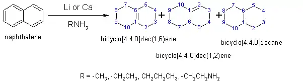 Esta reducción de la naftalina a isotetralina (1,4,5,8-tetrahidronaftaleno) produce algunas tetralinas (1,2,3,4-tetrahidronaftaleno) como subproducto, como es el caso de la reducción de Birch regular.