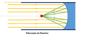 Principio del Telescopio de Newton, en el foco se sitúa el observador: telescopio reflector