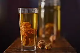 El refresco de mocochinchi se elabora a partir del almíbar que se genera de la rehidratación y la cocción del durazno seco en agua con canela y clavo de olor.[3] Se sirve un vaso parte del producto hervido junto a una mayor del almíbar. El nombre de la bebida varía en ciertas regiones del país, en Oruro se lo conoce como "mok'ola", en La Paz se lo conoce como "refresco o fresco de k'isa", "orejón" en partes del occidente, "pepa" en ciertas regiones del norte, en Santa Cruz, Cochabamba, Chuquisaca y Beni se lo conoce como "Mocochinchi" pero también en los departamentos ya mencionados y en el resto de los departamentos, excepto en Tarija donde se lo conoce simplemente como "refresco de pelón, durazno o huesillo"