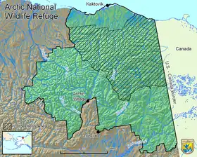 ![]() Refugio Nacional de Vida Silvestre del Ártico Ubicación en Alaska. | ||