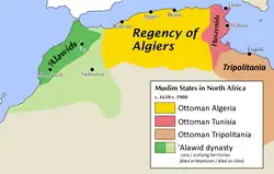 Después de su conquista por los turcos, Argelia se convirtió en una provincia del Imperio otomano. La Regencia fue gobernada sucesivamente por beylerbeys (1518-1570), bajás (1570-1659), agás (1659-1671) y luego deys (1671-1830), siempre en nombre del sultán otomano.
